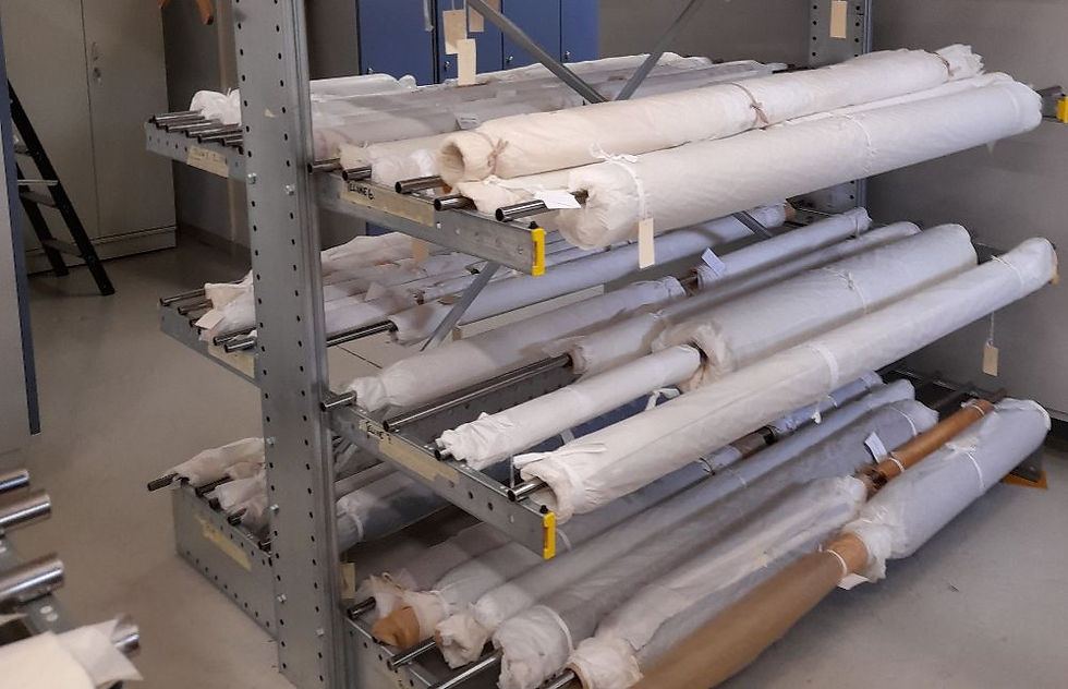 Aamupäivän byrokraattisten koukeroiden jälkeen pystyin hetken keskittymään kokoelmien järjestämiseen. Kokoelmienhoitohuoneessa rupesikin olemaan jo lievä ahtimus ja säilytystiloissa lievä kaaos.